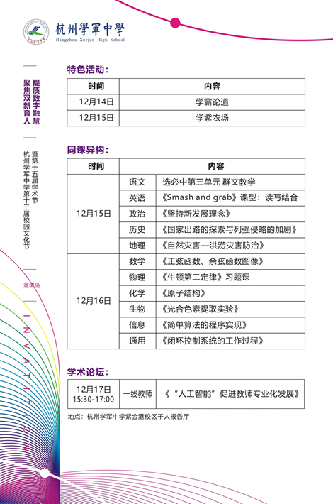 2021学年杭州学军中学第十三届校园文化节暨第十五届学术节逢冬而至,如约而来。