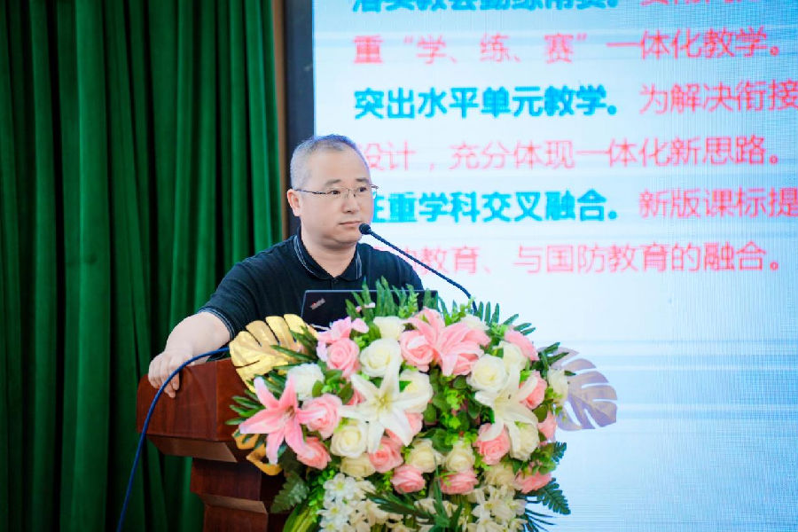 第二项活动是来自温州教师教育教学研究院体育研训员蔡景台老师带来的专题报告新《体育与健康课程标准》解读。蔡老师从《课程标准(2022年版)》四大变化即强化核心素养培育;落实教会勤练常赛;突出水平单元教学;注重学科交叉融等方面进行全方位的解析。