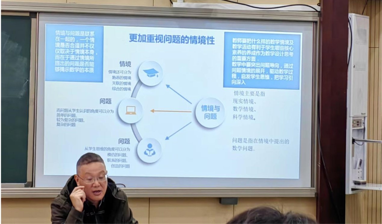 最后,夏晓华老师肯定了三位老师的课堂优势,对本节课的普高教材和职高教材进行对比。普高教材注重数,偏抽象;职高教材注重形,偏具体,知识点较少;并提出本节课应该解决的三个问题:1.为什么引入任意角?2.如何进行概念推广?3.推广之后如何嵌入原有的认知结构?并以此课为背景展开了关于情境教学的课堂教学设计讲座,数学新知的引入应关注实际生活的需要和知识本身的需要,问题情景的设计不能为了情境而情境,要让情境服务于教学内容,应该要注重功能的最大化!对此与会老师都深感受益匪浅。
