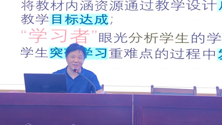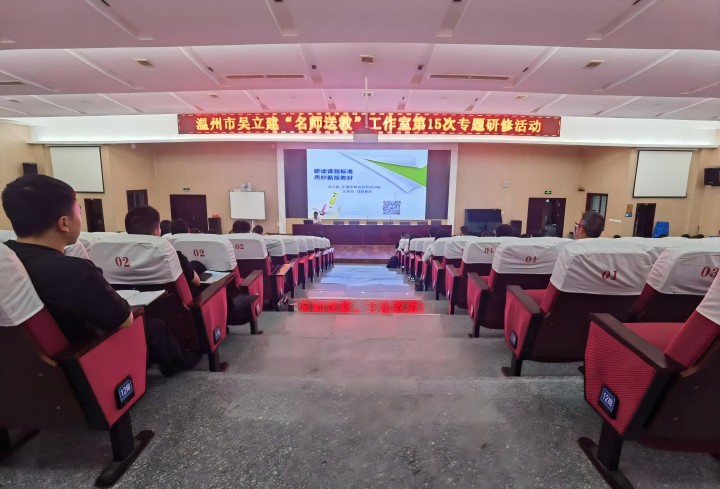 最后,由乐清市教育研究培训院副院长、正高级、特级教师吴立建老师作专题报告《研读新课程标准 用好新版教材》。吴老师对新教师在备课上提出了建设性的建议,并鼓励新教师对自己要有更高的要求,将新理念融入教学,融入论文写作,提倡课堂教学变革,把“教”堂变“学”堂,积极引发思考,思考如何妙用AI技术,如何融合信息技术,如何用开放的思维去设计课堂教学。此外,吴老师要求所有教师一定认真研读新课程标准,用好新版教材,指向核心素养导向的教学,指向学科育人的导向。