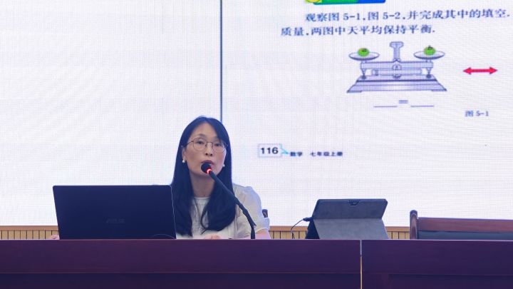 第五章《一元一次方程》由来自乐清市城南中学的陈谱锦老师进行解读。陈老师着重指出新浙教版教材编写理念突出立德树人、核心素养、一致性、结构化这四大要点。陈老师结合具体的案例设计,阐述新教材具体的细节修改与问题情境的变化体现核心素养的具体落地,以及整体规划方程内容的体系,理解方程本质、注重知识和方法的结构化设计,突显新课标教学的理念,接着结合新教材的五点变化,具体分析,深入了解现实生活情境,提出合理的教学建议。