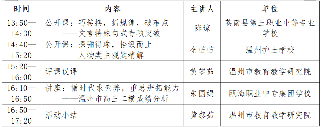 关于举行温州市黄黎茹“名师送教”工作室第14次活动的通知