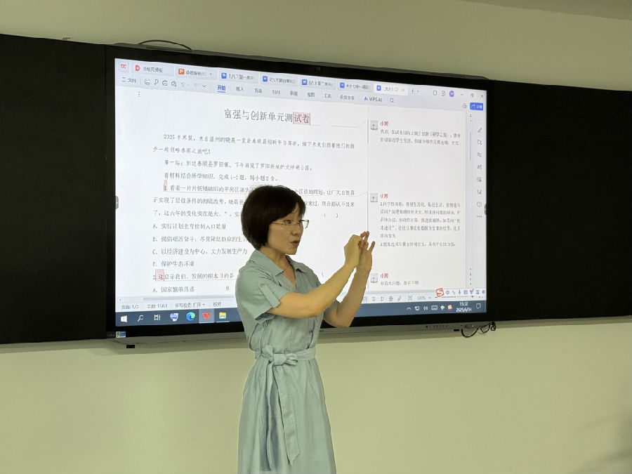 紧接着,王老师指出,探索素养导向的命题方式,要在情境创设、任务设置等方面有所突破。具体来说,第一,试题不能离开情境,素材选取要源于真实的社会生活,情境要符合学生的认知发展水平,情境类型要多样,能多角度反映道德与法治学习主题的要求。第二,试题任务要体现综合性、开放性、应用型、探究性,任务指向要清晰,考查学生道德认知、价值判断、法治素养、国情理解等方面的表现。考查多层次、多角度分析和解决问题的能力。第三,试题需注重严谨科学,试题的规范、逻辑、有效性等注意要点,都是命题者需要关注的,也是优秀思政教师需要修炼的“内功”。