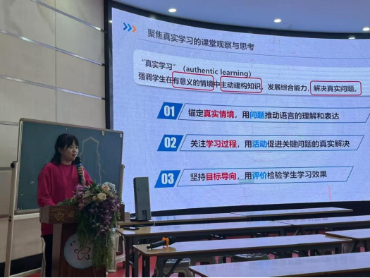 上午场尾声,温州市蒲鞋市小学李钰阳老师带来《基于真实学习的教学思考》观点分享。她结合自身教学实践,从 “真实学习的内涵解读”“课堂中真实学习的障碍分析”“促进真实学习的教学策略” 三个维度展开论述,提出 “以真实问题驱动学习、以多元任务激活思维、以过程评价保障效果” 的教学主张,引发在场学员对 “如何让学习真正发生” 的深度思考,为后续教学实践提供了理论与方法支撑。