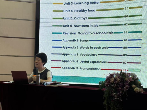 下午,专家讲座准时开启。特邀专家郑文老师围绕小学英语教学热点与难点问题,结合新课标要求与一线教学实际,从 “微课设计优化策略”“单元整体教学实施路径”“教师专业成长方法” 等方面展开深入讲解。讲座中,郑文老师通过案例分析、互动问答等形式,将前沿教学理念与具体教学实践紧密结合,既有理论高度,又有实操指导,帮助学员进一步厘清教学思路,明确改进方向。