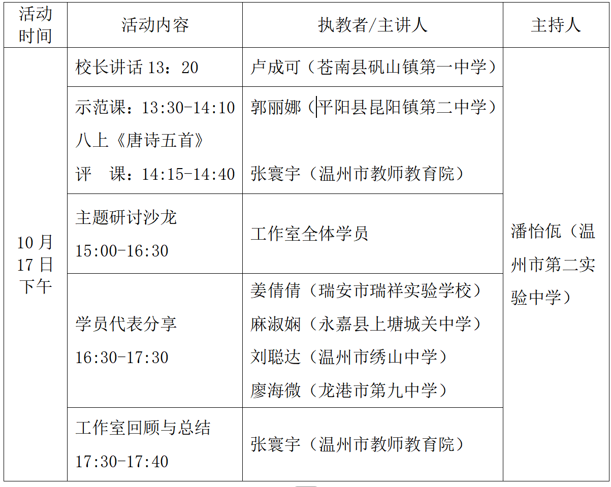 关于举行温州市张寰宇“名师送教”工作室第28次活动的通知