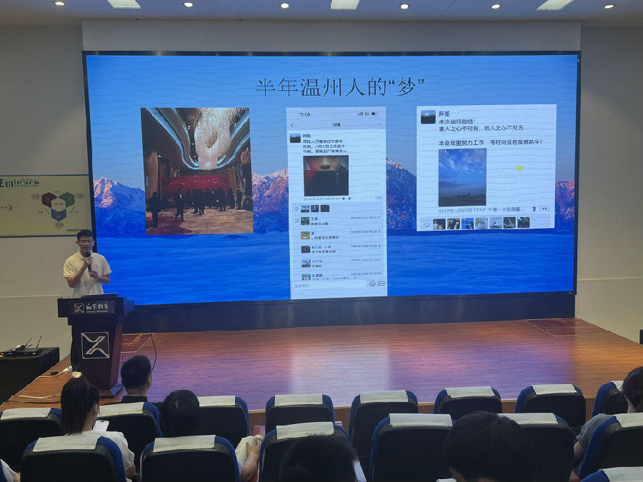 上午8:50开始,两场精彩的讲座展示拉开活动序幕。潘祖达老师作《体育十年》主题分享,从自己的从教经历出发,深入阐述了体育教育在提升学生身体素质、培养意志品质、塑造健全人格等方面的长期价值,为体育教师挖掘体育育人的深层内涵提供了新视角。上官梦梦老师的《六年,一场关于“我+我们”的教育实验》,则通过自身六年的教育实践案例,分享了在体育教学中如何构建师生、生生之间的协作共同体,实现从“个体成长”到“群体发展”的教育突破,其鲜活的故事与深刻的思考引发在场教师共鸣。