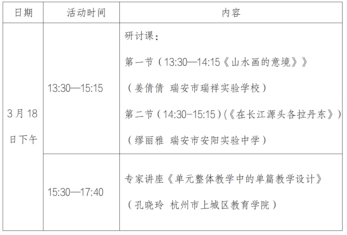 温州市    张寰宇“名师送教” 工作室于     2025年03月18日 13:20:00时到2025年03月18日 17:40:00时